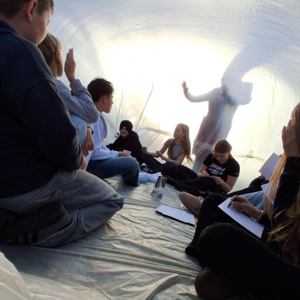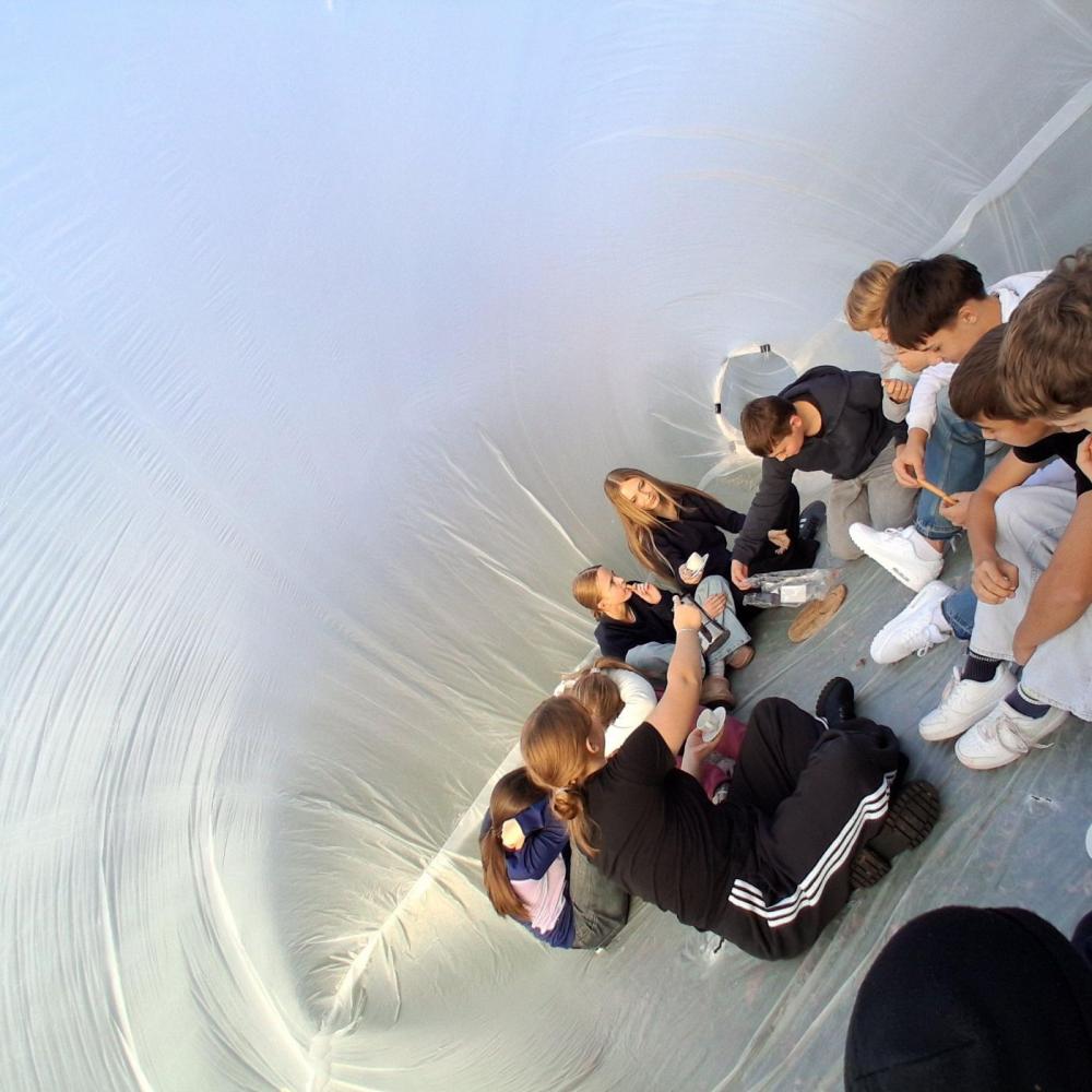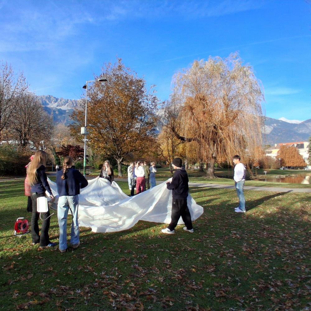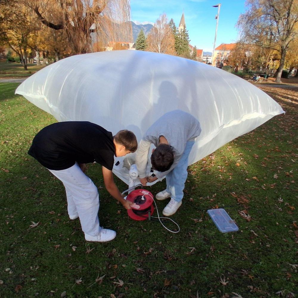 Im Rahmen des Technik und Design Unterrichts, Schwerpunkt Raum, besuchten Schüler:innen der 4cd die Kunst- und Architekturschule bilding im Innsbrucker Rapoldipark. Theoretisch und praktisch setzen sie sich mit Pneu Architektur, aufblasbaren Räumen auseinander.