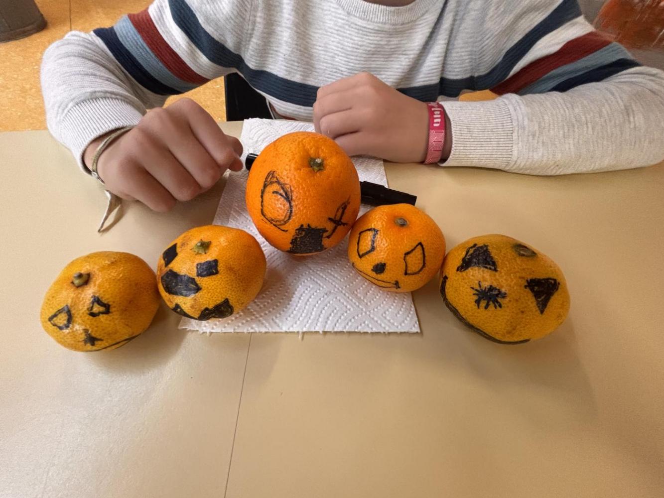 Mit viel Fantasie und Freude gestalteten die Kinder aus Mandarinen und Orangen kleine Halloween-Gesichter - ganz ohne Schnitzerei, dafür mit bunten Stiften, tollen Ideen und jeder Menge Spaß.