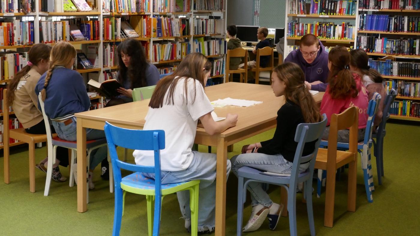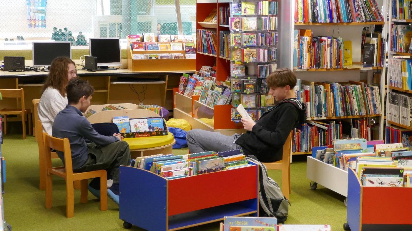 Im Rahmen des Projekts „Ältere lesen für Jüngere“ haben sich die Schülerinnen und Schüler der 2., 6. und 7. Klassen zusammengetan, um den Jüngeren spannende und unterhaltsame Geschichten näherzubringen. In kleinen Gruppen lasen die älteren Schülerinnen und Schüler den jüngeren ihre Lieblingskrimis, Kurzgeschichten und lustigen Erzählungen vor. Ob in der Bibliothek oder im Pausenraum – die Begeisterung und das Engagement waren überall spürbar.